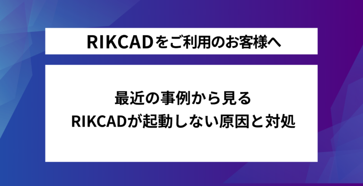 いつもRIKCADをご利用いただき、誠にありがとうございます。 現在、RIKCADを起動する際に「正しくないイメージ」というタイトルでエラーが表示され、RIKCADが起動できないというお問合せが増えております。本日は、こ…