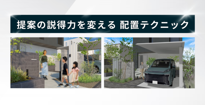 外構パースを作成する際、「人物や車は入れているけれど、なんとなく置いている」「生活感を出したいが、どこに配置するのが正解か分からない」そんな声をよく耳にします。 実は、生活感は“入れること”より「どこに・どんな意図で配置…