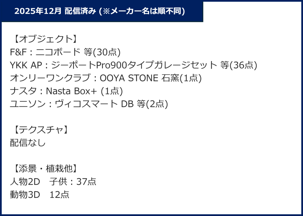 上記のオブジェクト・テクスチャは、今すぐにお使いいただけるものとなっております。
