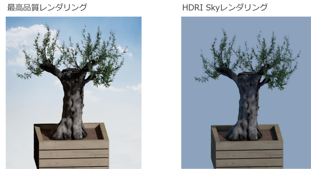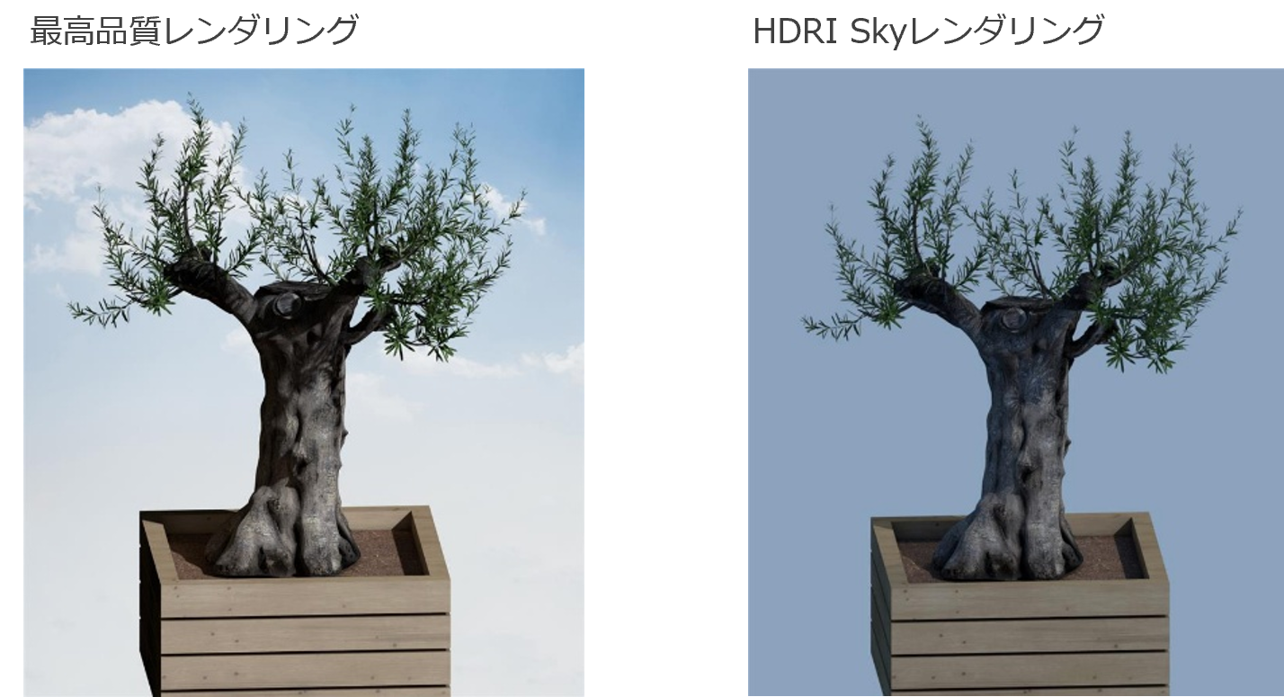 → RIKCAD12標準搭載のHDRI Skyレンダリングでは、影が柔らかく自然な雰囲気に仕上がります