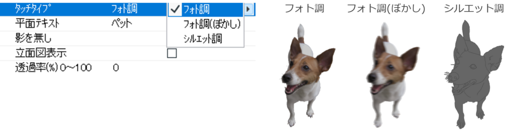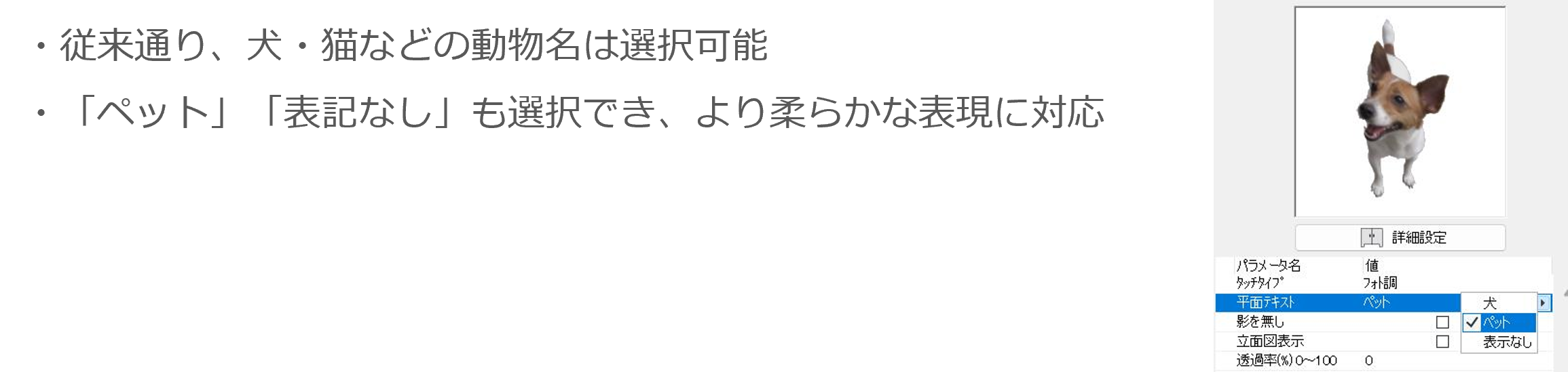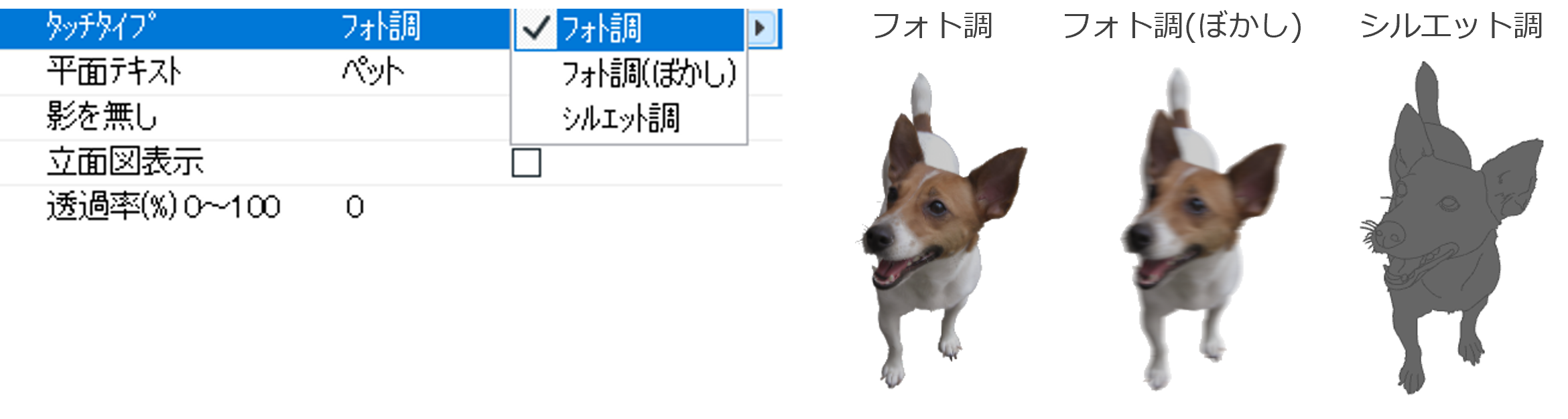今回選抜されたペットオブジェクトには、新たに「フォト調(ぼかし)」のタッチタイプを追加しました。