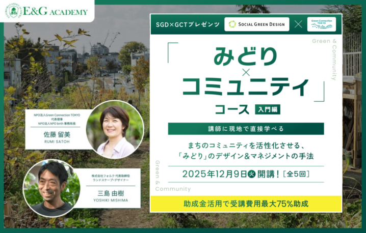 昨年も多くの方にご参加いただいた、リアル開催で学べる「みどり空間」のマネジメント手法とデザインの基本を学べる人気講座が、今年も開講します! ― コースの概要 ― コミュニティを育む「みどり」の多様な機能や可能性を知り、そ…