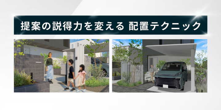 外構パースを作成する際、「人物や車は入れているけれど、なんとなく置いている」「生活感を出したいが、どこに配置するのが正解か分からない」そんな声をよく耳にします。 実は、生活感は“入れること”より「どこに・どんな意図で配置…