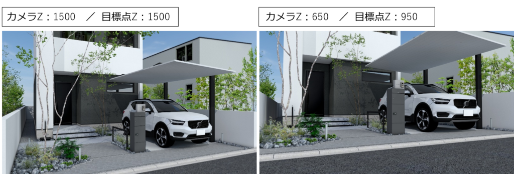 1,500mm前後にカメラツールを設定すると、自然な見え方になります。