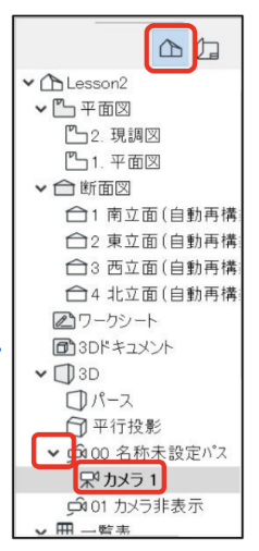 - 「00 名称未設定パス」の▷をクリックすると先ほど設定した「カメラ1」が表示されます。