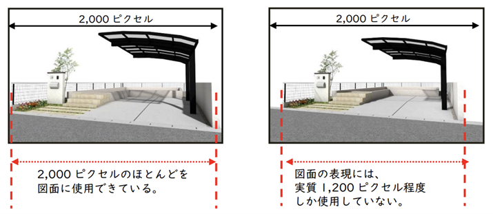 写真やパース画像では、フレーム全体を使って被写体を大きく見せることが重要です。