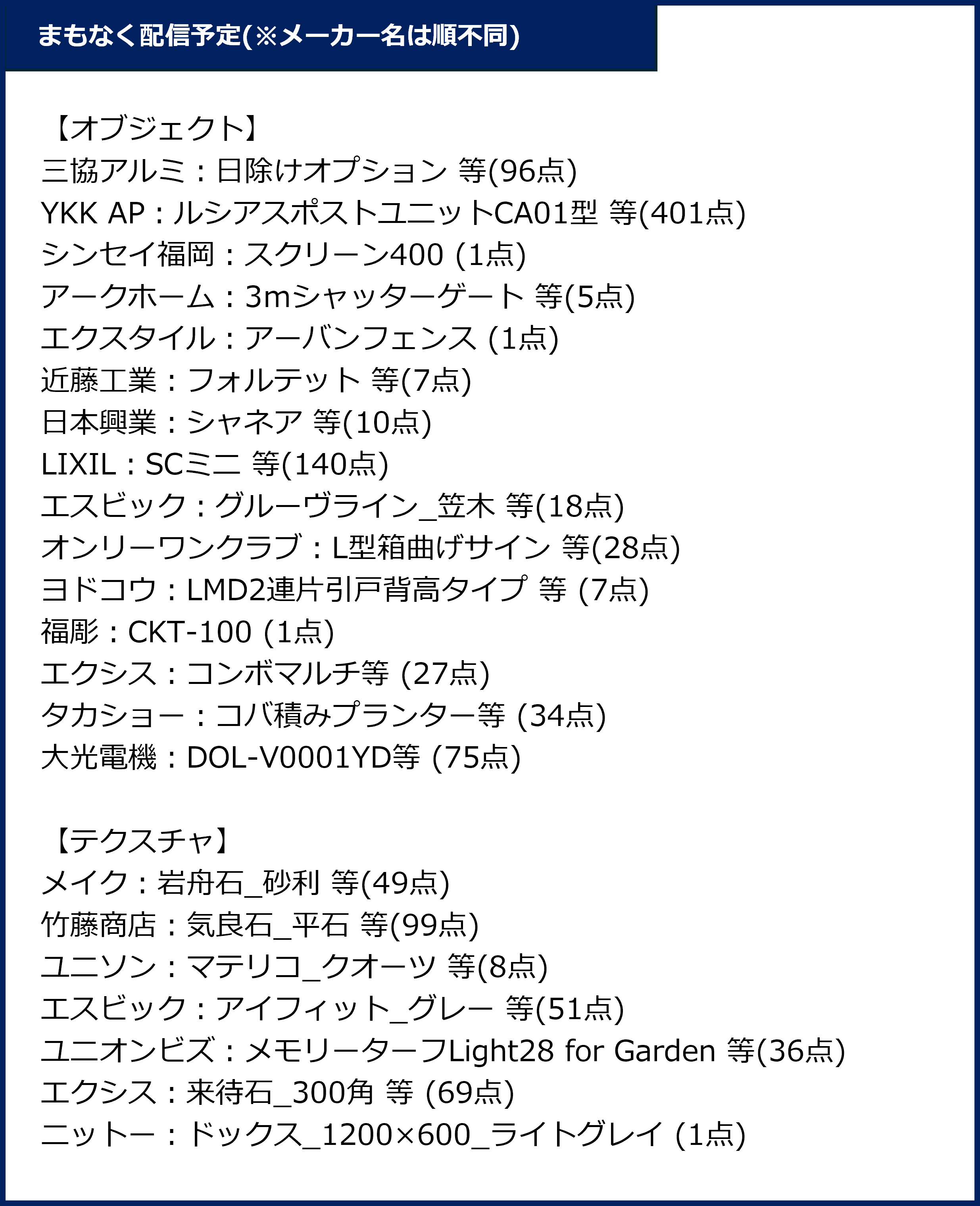 上記のオブジェクト・テクスチャは、今すぐにお使いいただけるものとなっております。