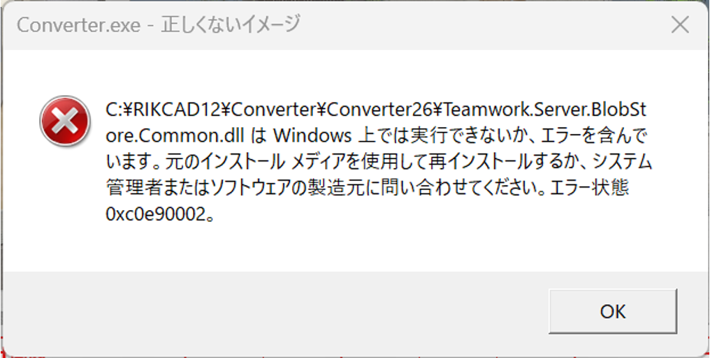 現在、RIKCADを起動する際に「正しくないイメージ」というタイトルでエラーが表示され、RIKCADが起動できないというお問合せが増えております。