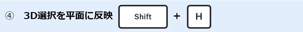 この場合、3D画面、または立面図で選択した要素を2D画面に戻って選択する機能がありますが、その際に活用できるショートカットです。