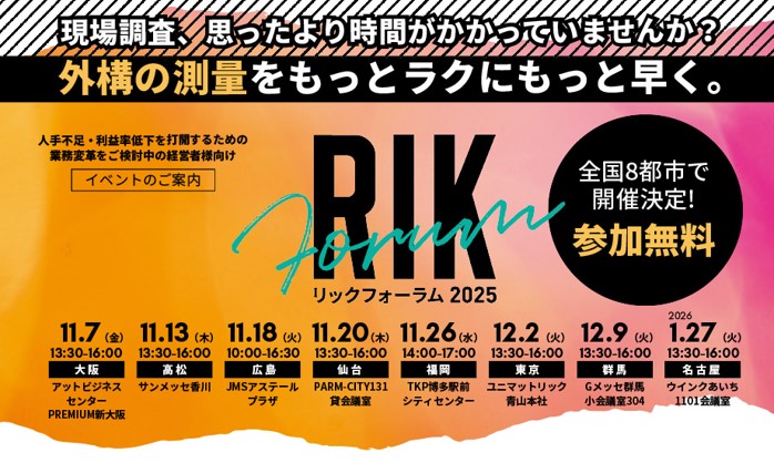人手不足・利益率低下といった現場の課題を解決するヒントをお届けするリアルイベント、「RIKフォーラム2025」を全国8都市で開催します。