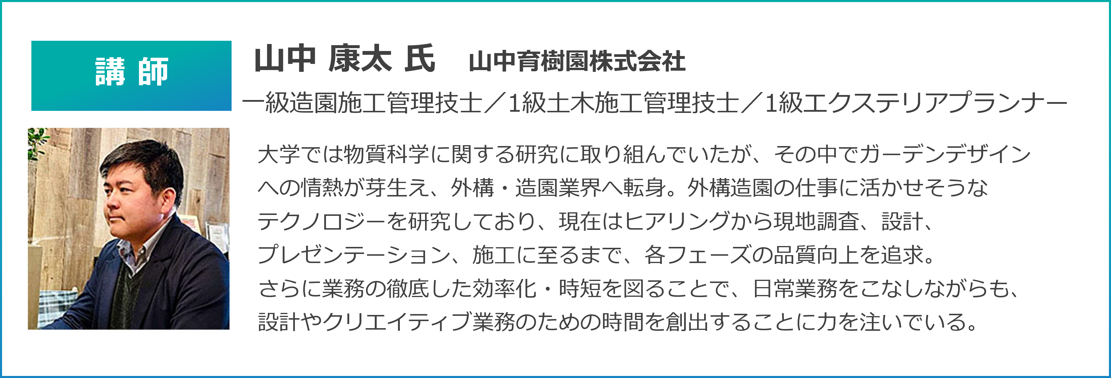 - 社員数名で運営している外構・造園会社の代表者、実務担当者の方
